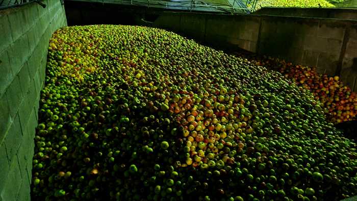 The apples are too small to be satisfactory for eating, but that's irrelevant when it comes to squashing them into cider-producing mulch.