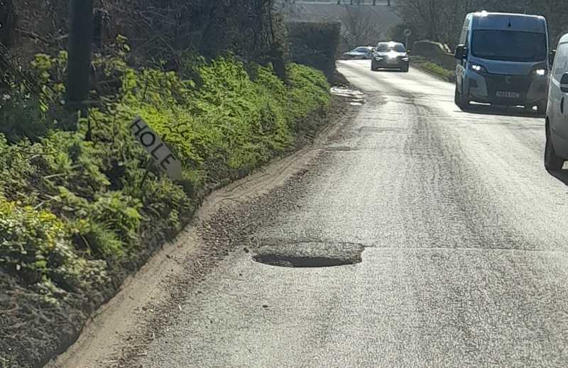 These home-made warning signs have been popping up locally to warn drivers of potholes.