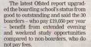 This week's Essex County Standard has an article about the local grammar school for boys, headlined "'Outstanding' grade for school's boarders". I didn't even know it had boarders, but apparently it does.