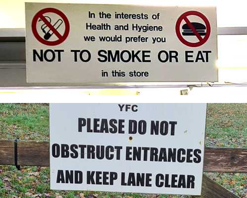 Here are a couple of signs I saw recently: