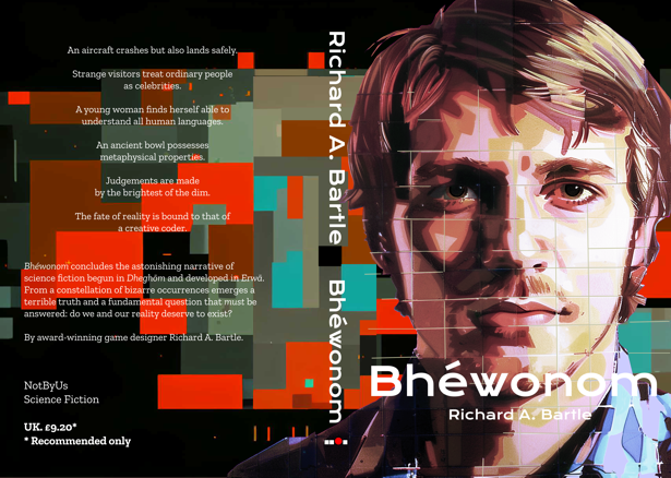 The BlurbAn aircraft crashes but also lands safely. Strange visitors treat ordinary people as celebrities. A young woman finds herself able to understand all human languages. An ancient bowl possesses metaphysical properties. Judgements are made by the brightest of the dim. The fate of reality is bound to that of a creative coder. Bonus MattersThese do not appear in Bhéwonom for space reasons, but they're canon. The Matter numbers are indicative of where they fit into the narrative of the book. Read Matter 10.5, Butterflies. Read Matter 17.5, The Rule of Revereshow. Read Matter 28.5, The Luckiest Man in the World. Read Matter 31.5, The Judgement of ChatGPT. Read Matter 35.5, Strange and Enigmatic. Where You Can Get itBhéwonom is available in print and Kindle format from Amazon.co.uk,