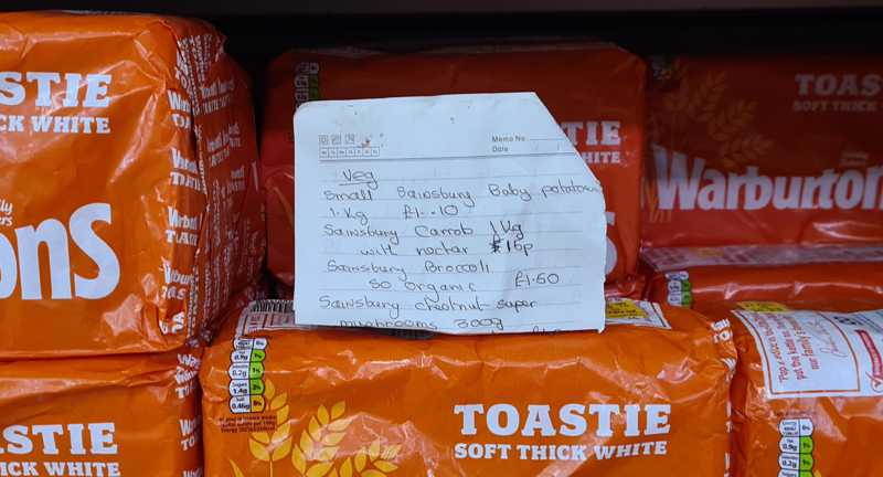 It looks as if it's someone's shopping list, but it's all Sainsbury's products and it includes the prices. Could it, therefore, be some kind of stealth marketing campaign?
