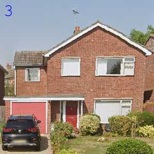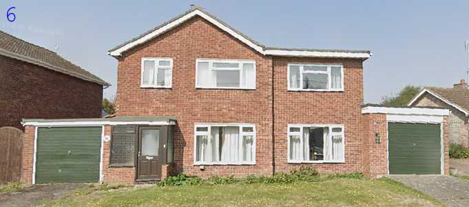 Finally, we come to house 6. It has a single-storey extension behind the garage, along with a porch at the front, plus an entire two-storey extension to the right of the house and a second garage to the right of that.