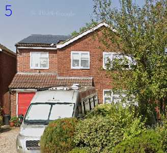 House 5 is harder to see because of the van and the tree, but it's the same as house 4 except it has solar panels on the extension roof.
