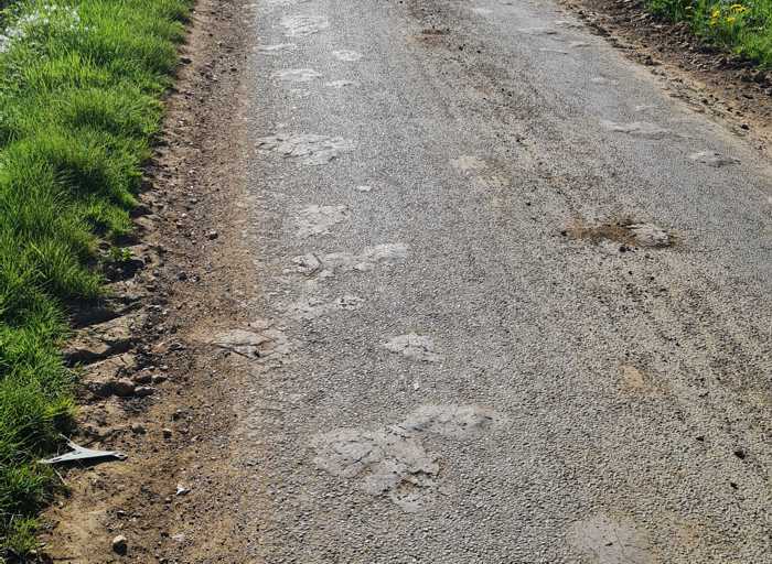 Normally, I wouldn't notice these dried bits of mud in the road that have come off the wheels of tractors.